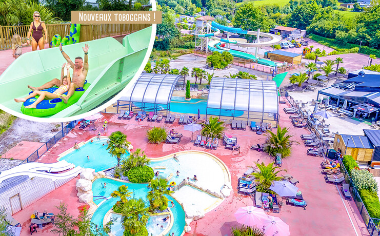 Un superbe espace aquatique avec belles piscines : extérieure et couverte, toboggans, bancs hydromassants, fauteuil de mise à l’eau PMR, s'offrent à vous et votre famille dans un cadre grandiose.